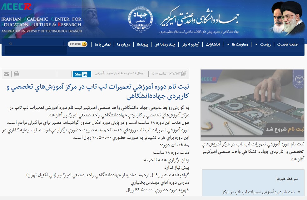 آموزش تعمیرات لپ تاپ زیر نظر استاد بختیاری مدرس جهاد دانشگاهی امیرکبیر